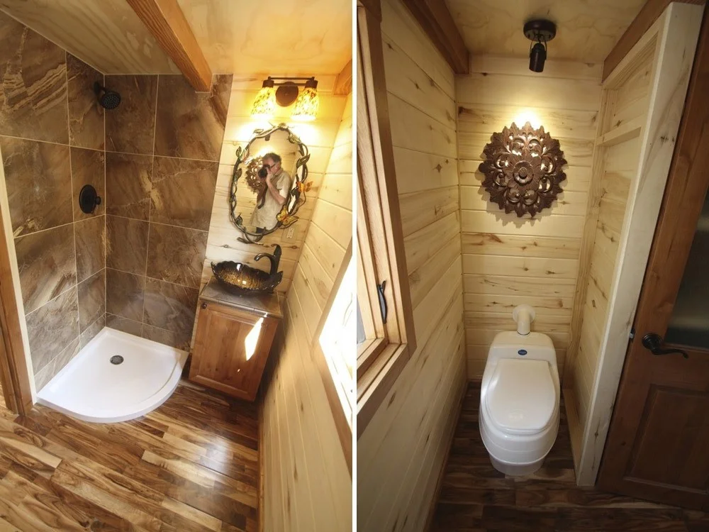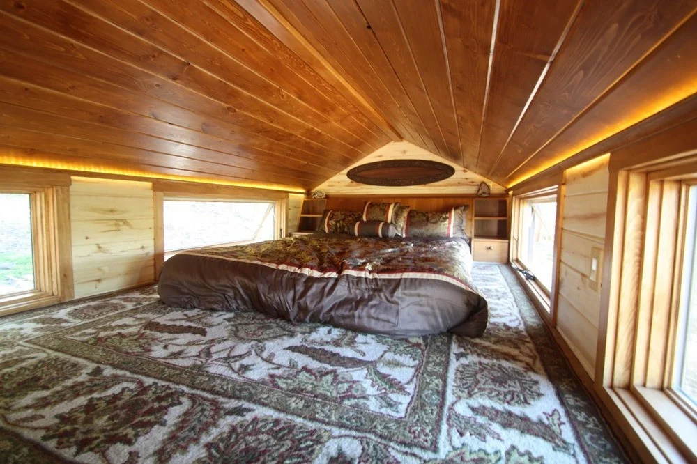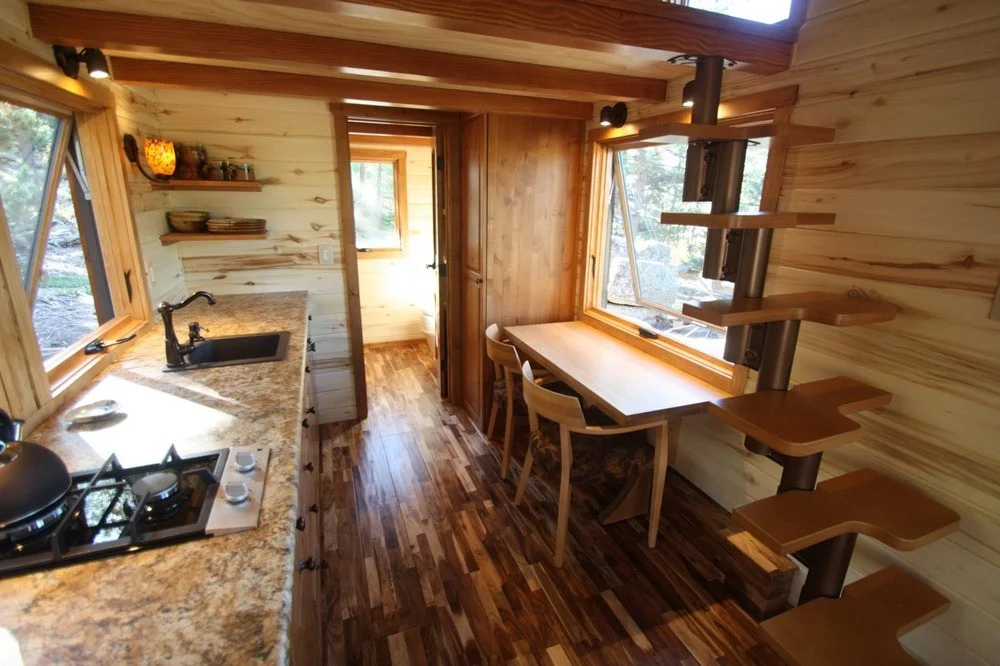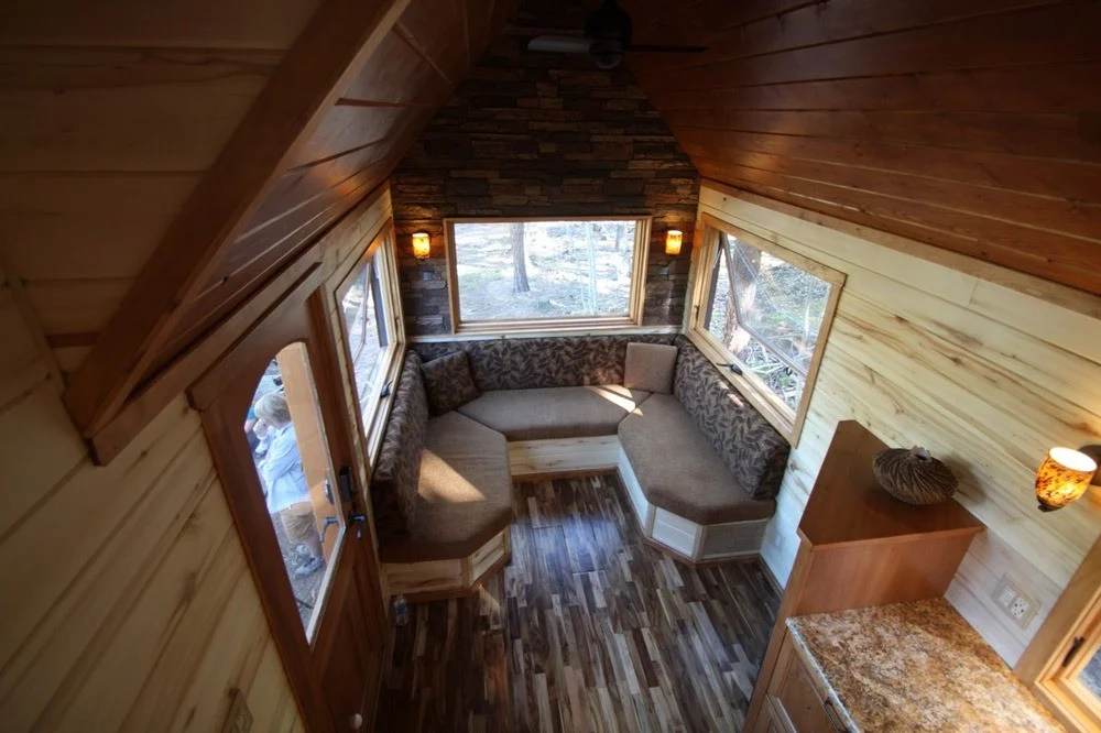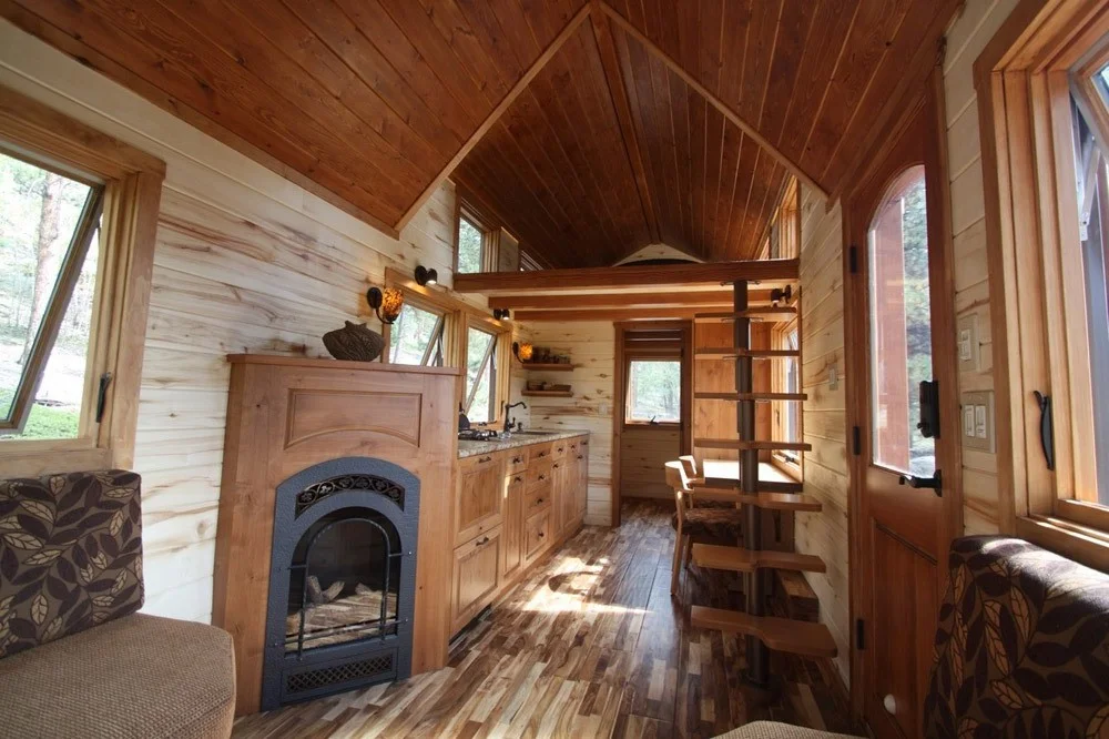 The design of this tiny house demonstrates how exceptional design creates a comfortable atmosphere within its compact space. The design requires all architectural elements and material choices to work together toward unified design objectives. It’s ideal for anyone who loves the idea of tiny house living, rustic interiors, and a strong connection to the outdoors—without giving up comfort.