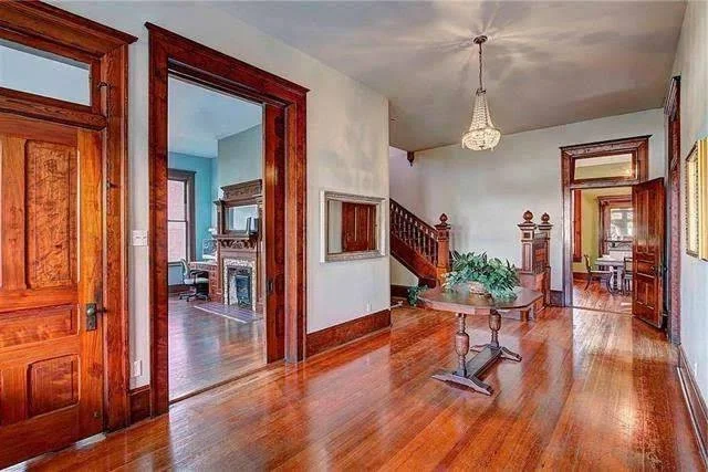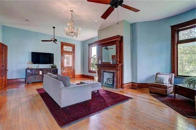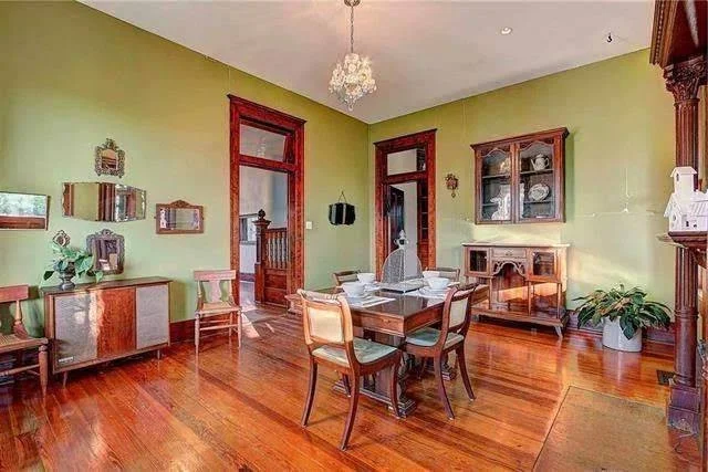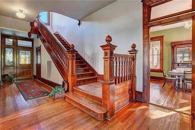 The home combines both Queen Anne and Colonial Revival architectural styles which create an elegant yet inviting appearance. The turreted corners serve as the first visual element which shows character through their distinctive design. The grand colonnade brings balance and charm, making the exterior just as impressive as the inside.