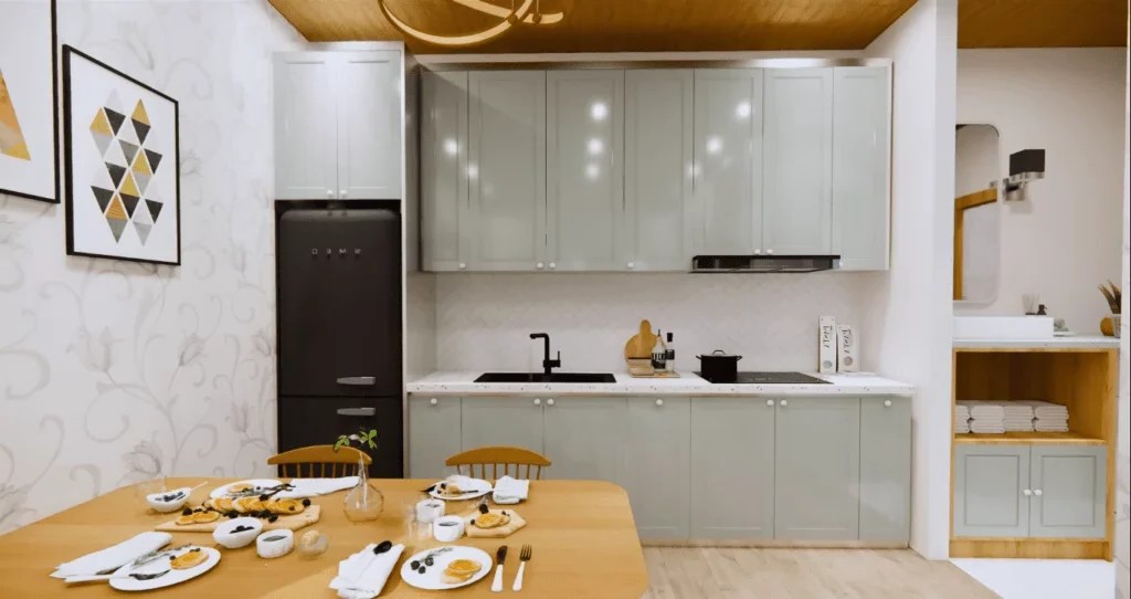 The kitchen is a small place but it does not mean limited. Everything is at hand, properly arranged, and within easy reach. The layout allows meals to be prepared and breakfasts to be grabbed in a swift manner all without the feeling of being in a tight space.
