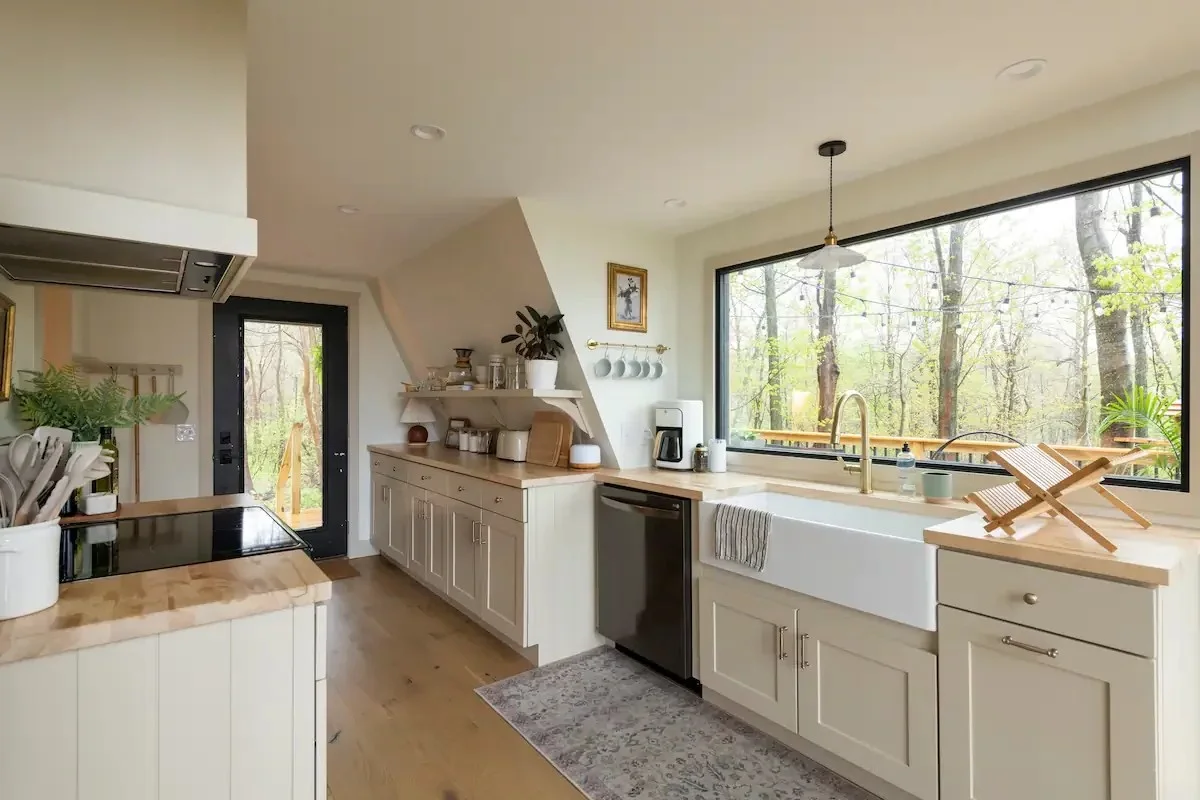 You can start the day with a simple breakfast, cook a relaxed lunch, or prepare a cozy dinner after a hike or a long soak in the spa. Everything you need is there, so you can treat the space like your own little cabin kitchen.